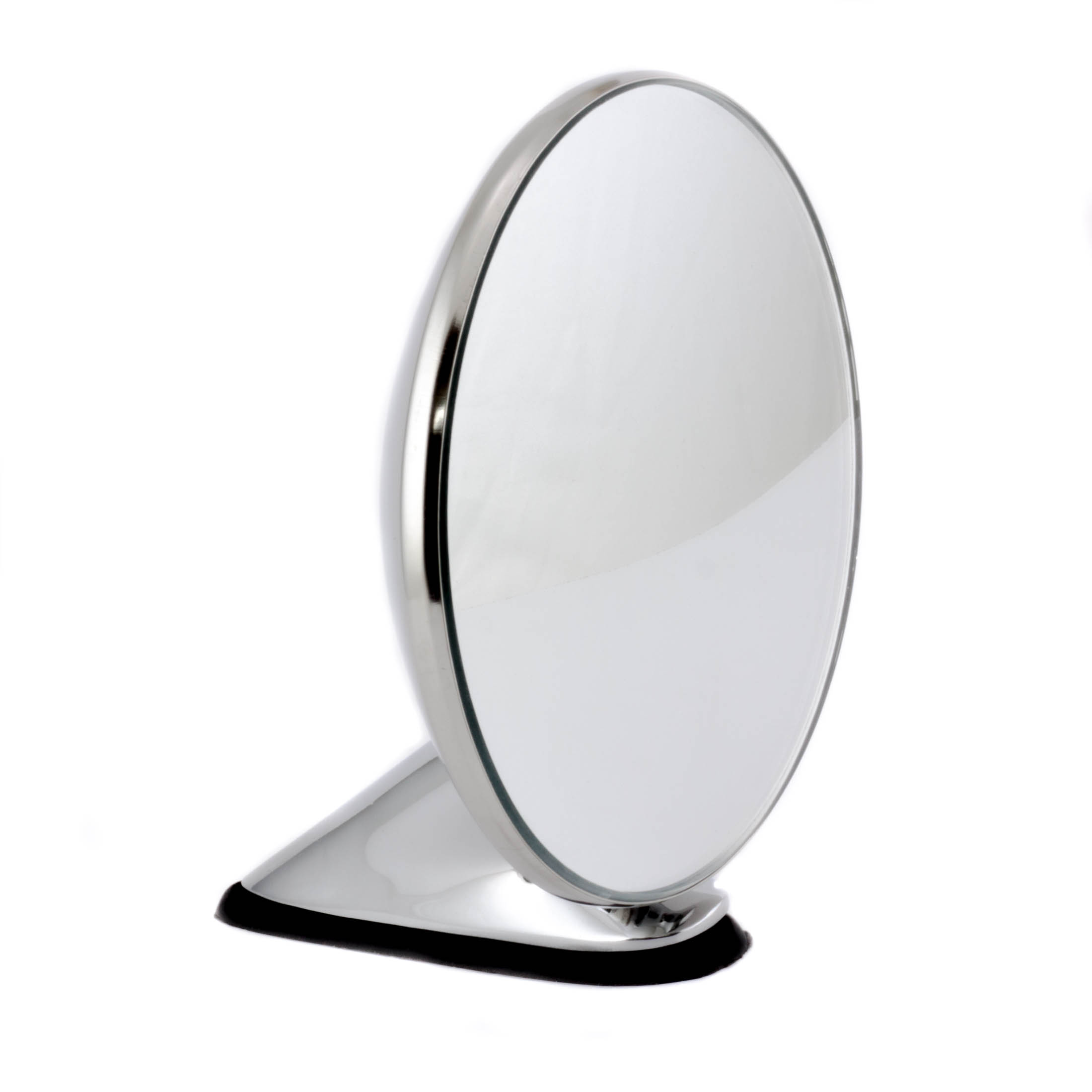 Chromované zpětné zrcátko pro veterány. Příruba z nerezu, nožička a tělo pochromovaný kov.