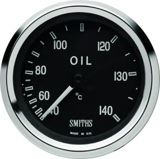 Mechanický, kapilární teploměr vody SMITHS. Série Cobra. Průměr 52mm. Možnost volby rámečku přístroje ( plné „V“ a 1/2 kulatý ). Série přístrojů Cobra je navržena přímo pro vozy AC Cobra a jejich repliky.