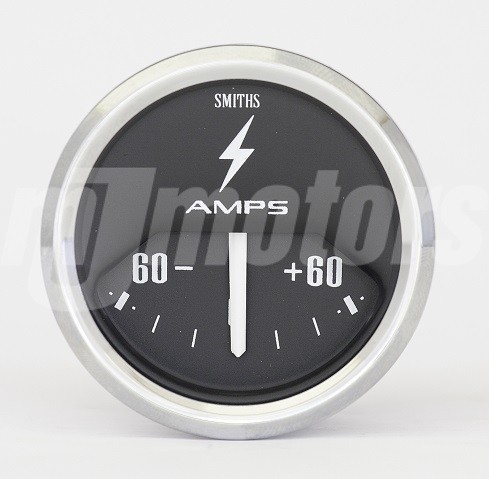 Ampérmetr SMITHS. Série Classic. Rozsah 60-0-60 amps. Průměr 52mm. Možnost volby rámečku přístroje ( 1/2 „V“ a 1/2 kulatý ). Série přístrojů Classic je pokračování výroby klasických přístrojů Smiths.